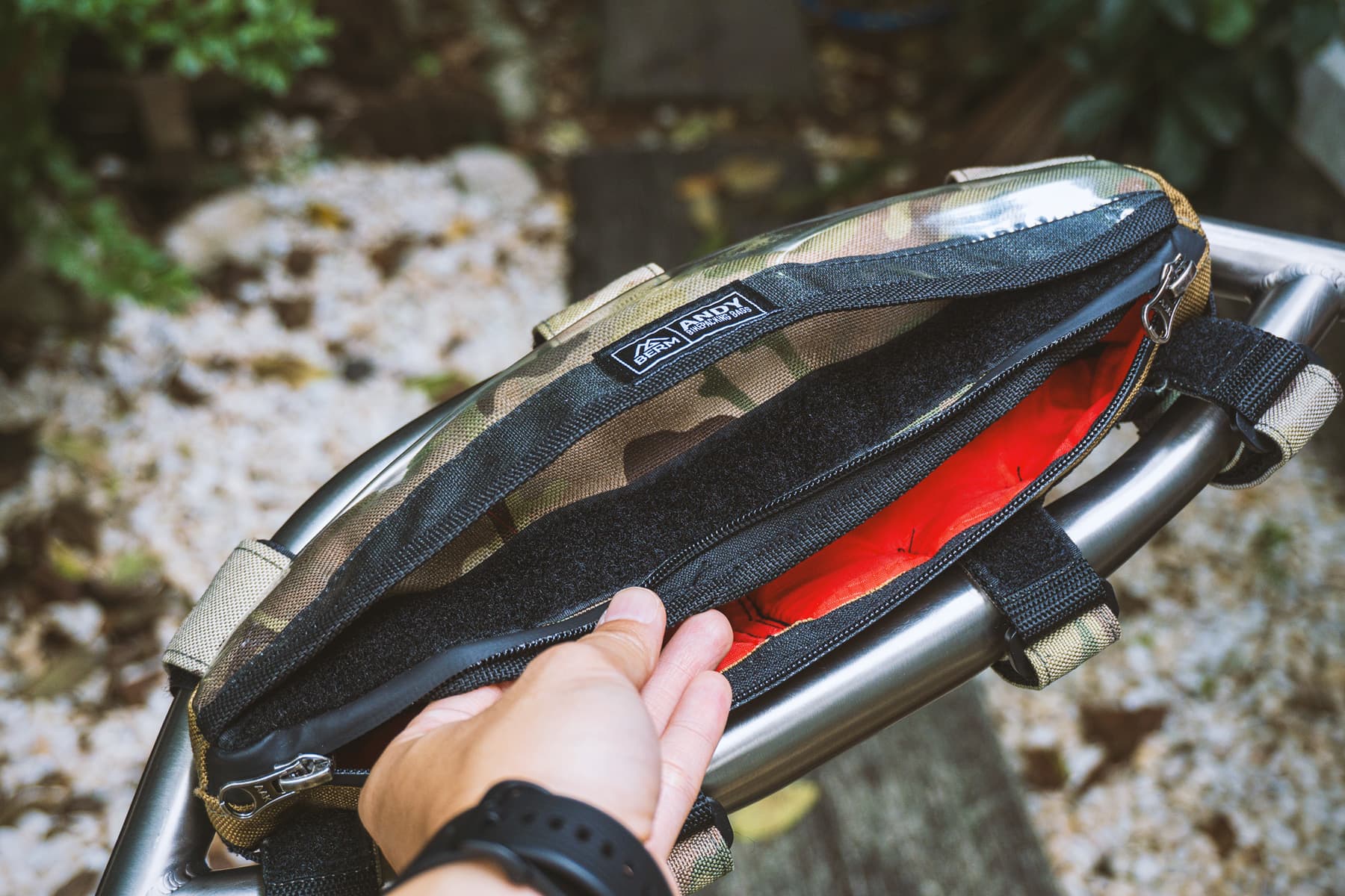 The optional Route Loop Bar Bag is a custom-made bag designed specifically for use with the Route Loop Bar. It's handmade in Singapore as a collaboration between Berm Cycle and Andy Bikepacking Bags. The bag is made of military-grade CORDURA 1000D with a waterproof zipper, top transparent zip cover to store your map, industrial strength Velcro, and strap; the ideal choice for making loop spaces functional. The Route Loop Bar Bag is available in three colors; black, multicam camo, and woodland camo. We received the bag in woodland camo that perfectly matched our frame bag. The black and camo would go well with most of the adventure bikes but I would also love to see more colorful versions from them.